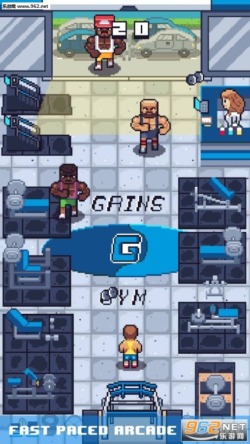 1、玩家需要控制自己的像素风格的小人,来保护自己的健身房区域;