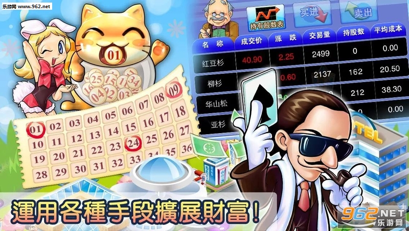 由掷来决定行进的步数,还可以随意在停留的地方买土地、盖房子,幸运的话还能有财神爷降临。