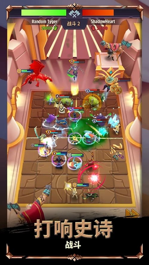 、排好阵容后自动完成对决,灵活运用不同的战术,帮助快速打击敌人;