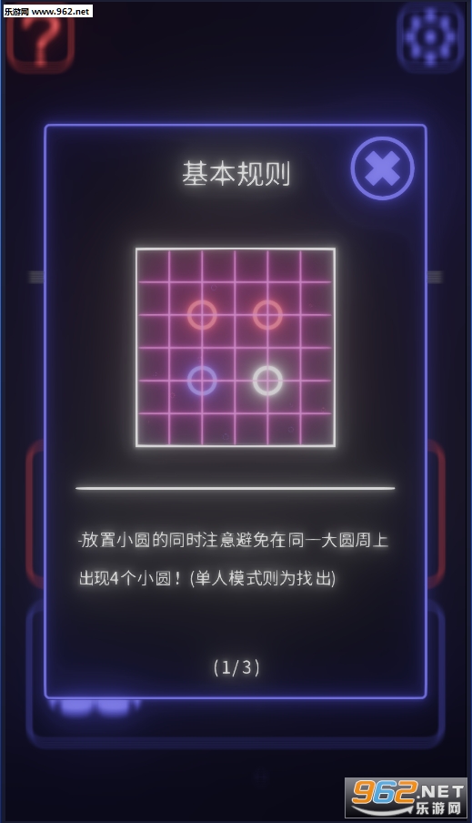 《共圆》是一款很考验脑力的益智对战手游,游戏以四点共圆的几何远离,单人是需要在数个点中找出共圆的四个点,多人则是互动玩法,并且有指错的的概念,共圆的玩家会被淘汰。