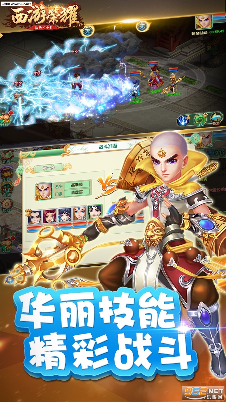 《西游荣耀满v版》是一款卡通Q版画风回合制仙侠手游,游戏采用3D画面场景设计,拥有庞大的世界观,画面场景,众多经典的也能够小角色可以让你来收集,在游戏中体验热血战斗,拳拳到肉的打击快感,重温经典西游路,赶紧下载吧!