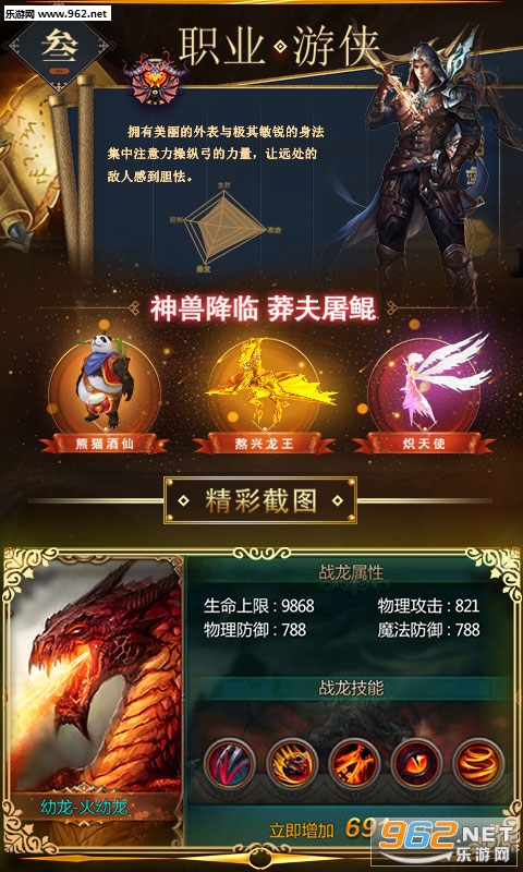 8、首冲奖励大幅提升,直送直升8888战力橙装一套,神宠黄金幼龙,海量资源。