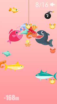 抛竿,深入海底,收线过程中尽可能抓住更多的鱼!升级你的渔具来抓住更多的鱼,潜入更深处,捕获珍奇鱼类以及发现新品种!