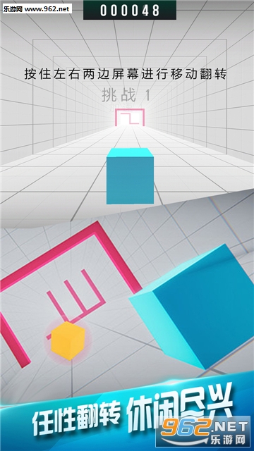 玩家需要控制蓝色方块移动,或者点击屏幕翻转方向,努力避开所有的障碍物,挑战更高的分数!