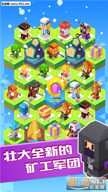 玩家可以购买、合并和管理矿工团队,探索和挖掘更多的宝藏,而且超多可爱的矿工角色等你收集!