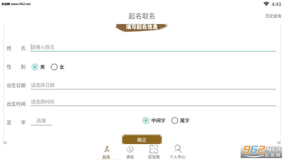 输入姓氏八字,轻轻松松起好名!