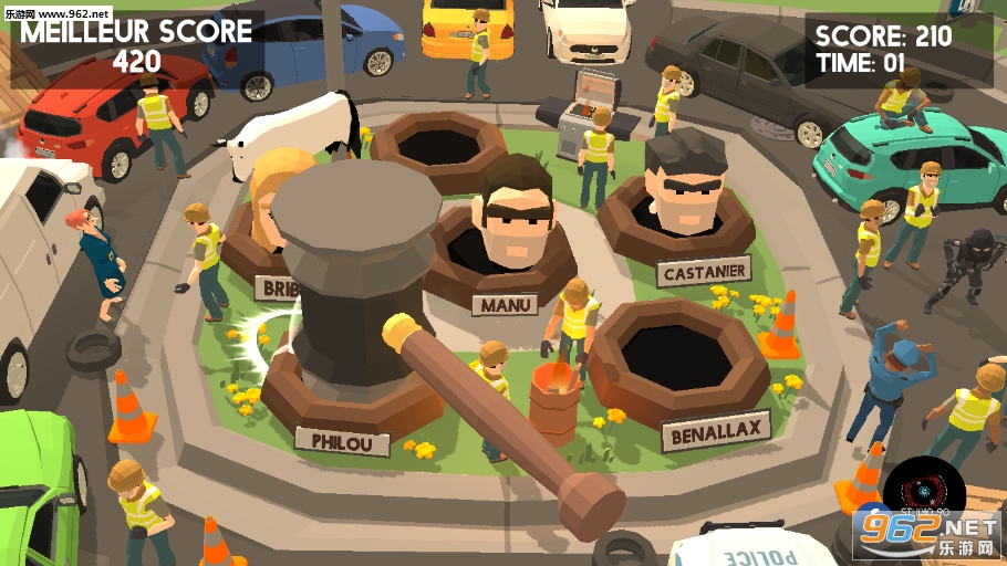 趣味的打地鼠游戏,考验玩家的手速,有时是有着时间限制的,玩家需要在半分钟内尽可能多的砸中头,砸中了会加分,时间结束后记录最高得分,喜欢的朋友可以下载试试。