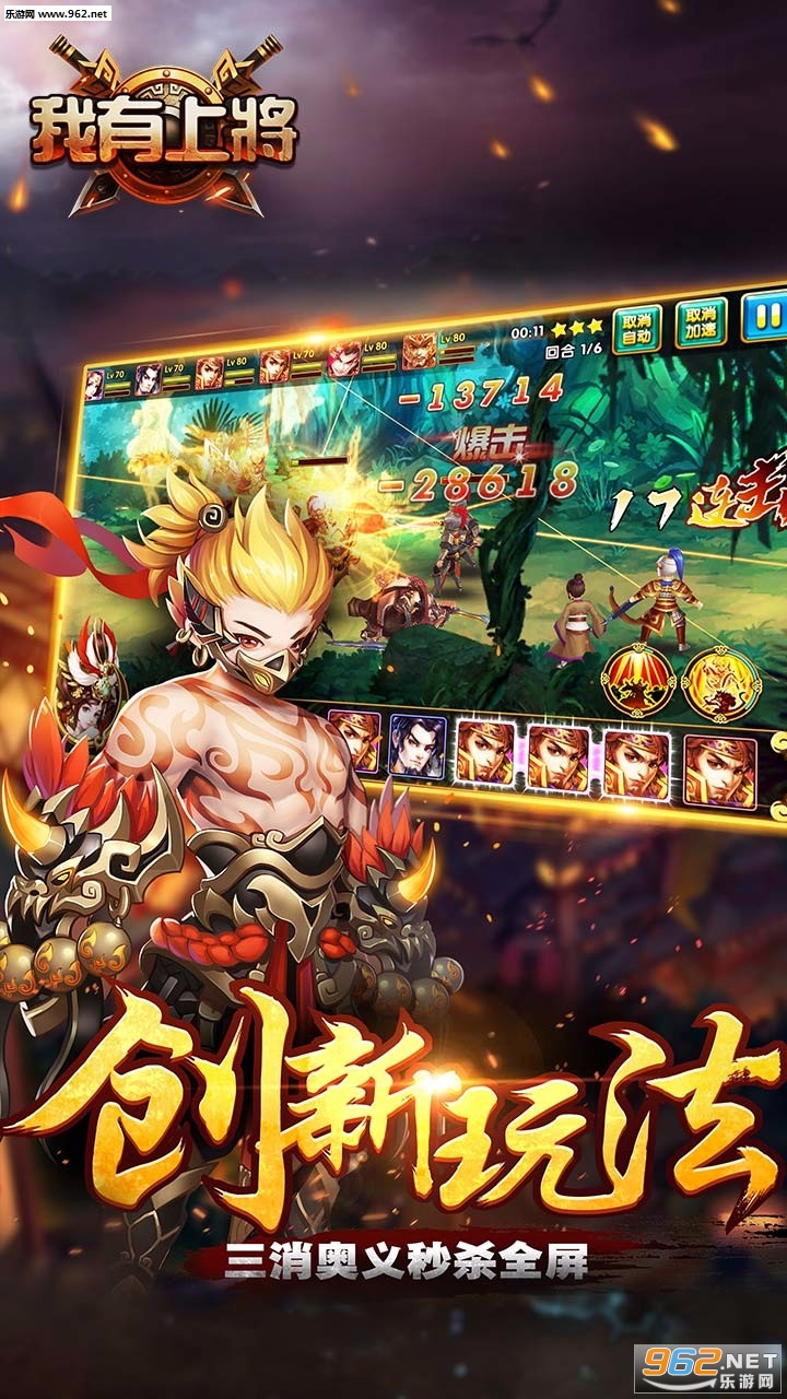 《我有上将》,是一款极致动作战斗体验的三国3D动作卡牌手游。这款游戏摆脱了传统卡牌模式的束缚,将卡牌与动作完美结合,手动操作实时对战。以三国原著为蓝本,力图还原一个别样的三国。同时,也将体验到三国英雄的炫酷大招,一切秒杀、PK瞬息之间的胜负变换于你的股掌之中,让你真正融身于风云三国。 2026年3D策略卡牌大作,游戏以三国历史为背景,新奇的三国人设,精美端游级别的人物模型,全新的三消奥义玩法!游戏以三国历史为背景,在这乱世之中又发生着很多与正史不同的意想不到的事情,等着玩家挖掘。玩家将扮演魏蜀吴其中一位君主,收集各国名将开启平乱世的冒险旅程,打造属于自己的主公时代!