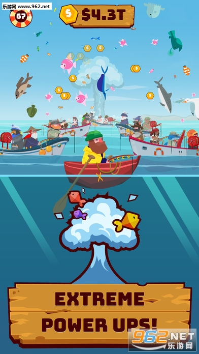 放开你的钓线,尽可能多地钓鱼来挣钱!用你的现金,你可以支付额外的渔民帮助你…更多的人=更多的钱!