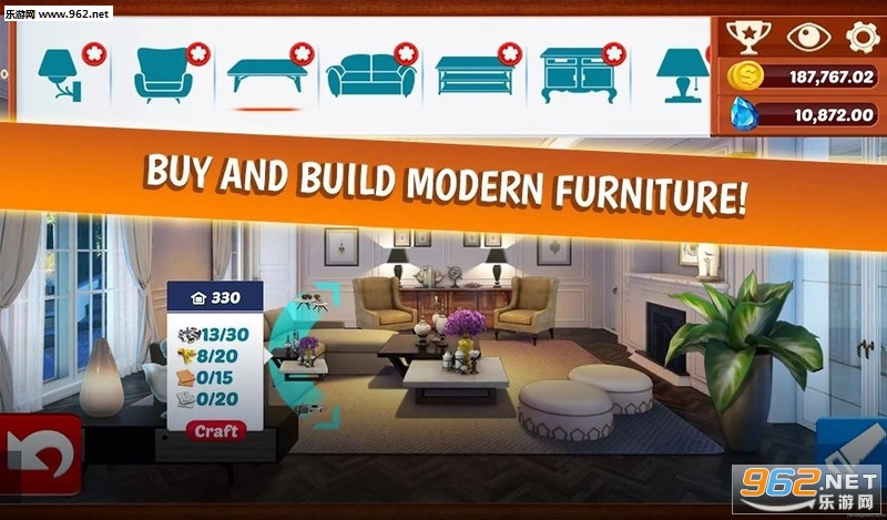 装饰栩栩如生的家!随着家具超过150点的选择,有无穷的组合!