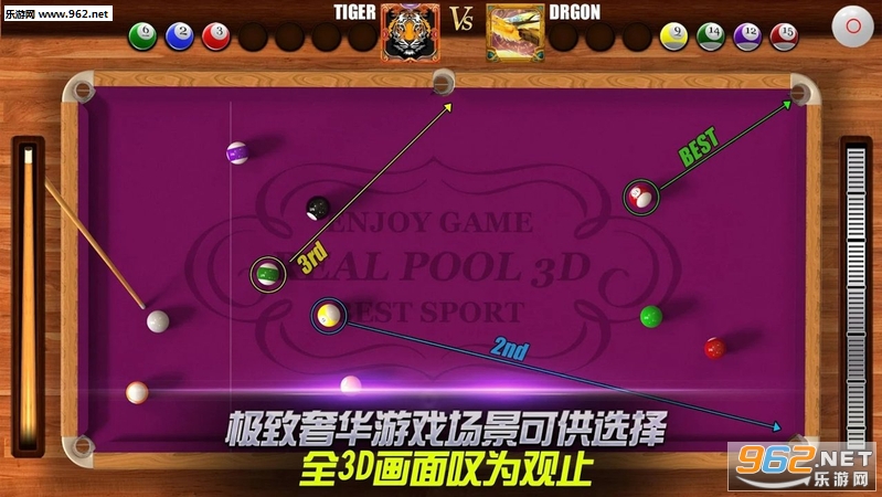 真实台球2026是经典的8球台球加上最新的游戏模式!从街头比赛开始参加挑战赛,不断成长,解锁更高级别的挑战赛,成为世界冠军!