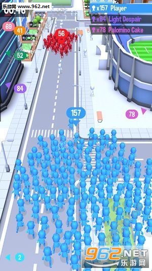 《拥挤大作战双倍人数最新版》是一款很有趣的休闲竞技游戏,游戏中玩家可以选择自己喜欢的颜色的小人然后进入到城市中去,你要做的就是将那些白色的小人全部染成你的颜色,这样它们就是你的小弟了,然后你就可以去感染那些人数比你少的队伍了,努力成为场中的大哥大。