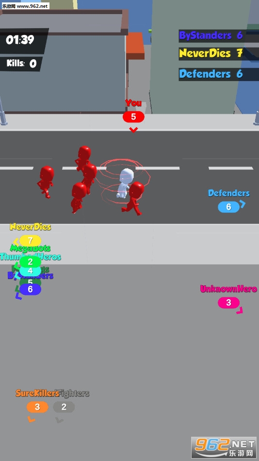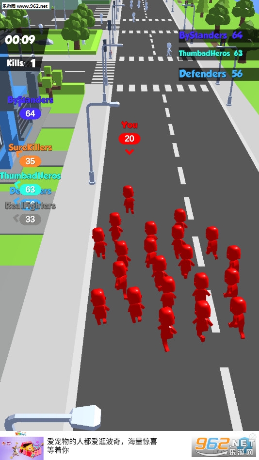 一款以城市为背景设计的人群大作战游戏,游戏的规则很简单,每个玩家开局就是一个只有几个人的小队伍,通过说服白色的行人加入自己的队伍,不断的吸纳行人壮大队伍的人数,如果发现其他人数较小的队伍也是可以去吸纳的,这样可以让你的人数增加的更快,随着游戏的进行你的人数会越来越多,可以体验到百人拥挤在城市道路上的震撼感觉。