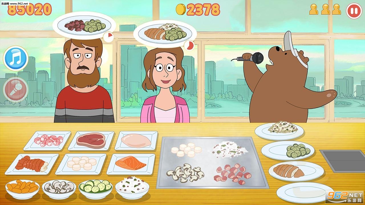 玩家要满足顾客的各种需要,并以最快的速度来为他们带来各种美味佳肴。而在玩家炒菜的同时,其他两只熊也会在周围进行不同的动作。
