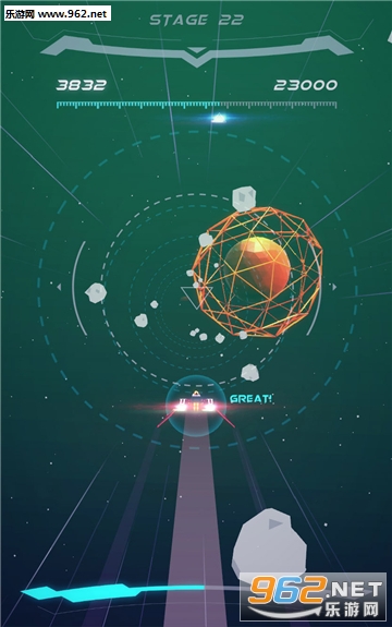 玩家需要驾驶飞船,避开所有的陨石,即可获得连击和护盾能量,尽你所能挑战高分吧!