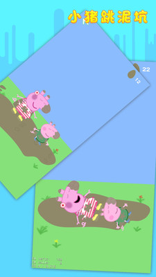 一款以小猪佩奇为主角的儿童手机游戏,游戏中包含三个小游戏,第一个是小猪跳泥坑,点击一下屏幕小猪就会跳一下,第二个是拼图游戏,第三个是小猪玩快乐小鸡。游戏还可以选择单人模式和多人模式。