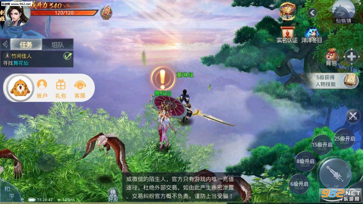 《御龙传说游戏》拥有这个非常高清晰和流畅的3D引擎,游戏的自由度很高,玩家在里面可以任意闯荡,坐骑也是可以自由捕捉到的,喜欢仙侠游戏的玩家来下载吧。