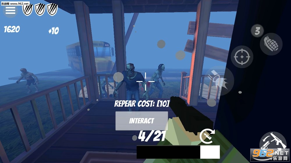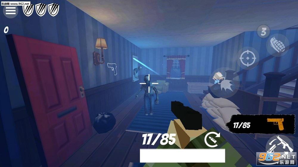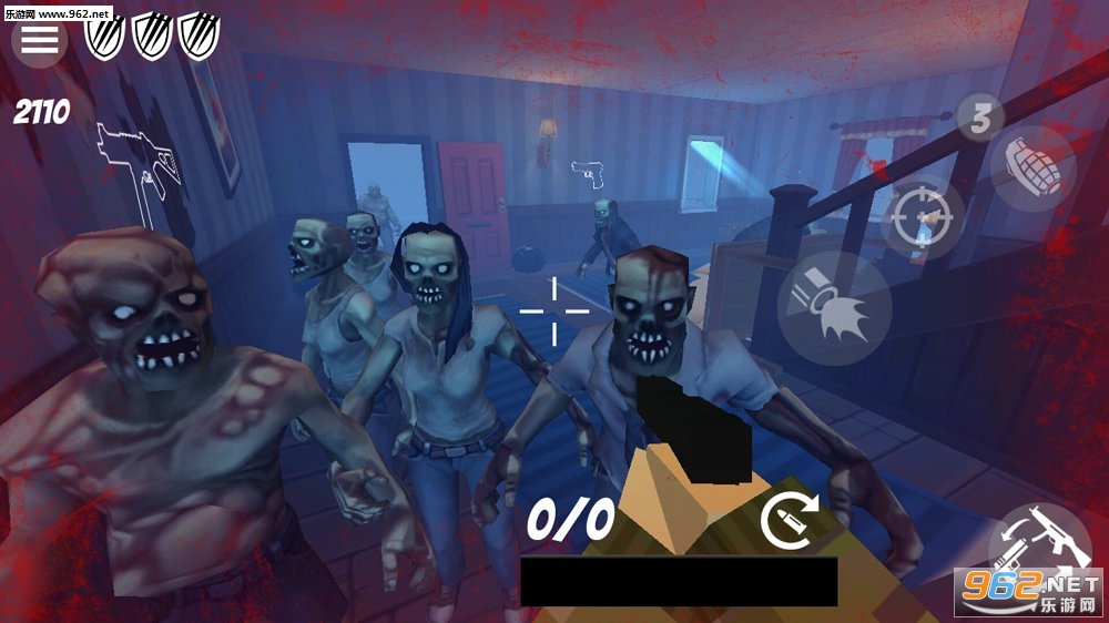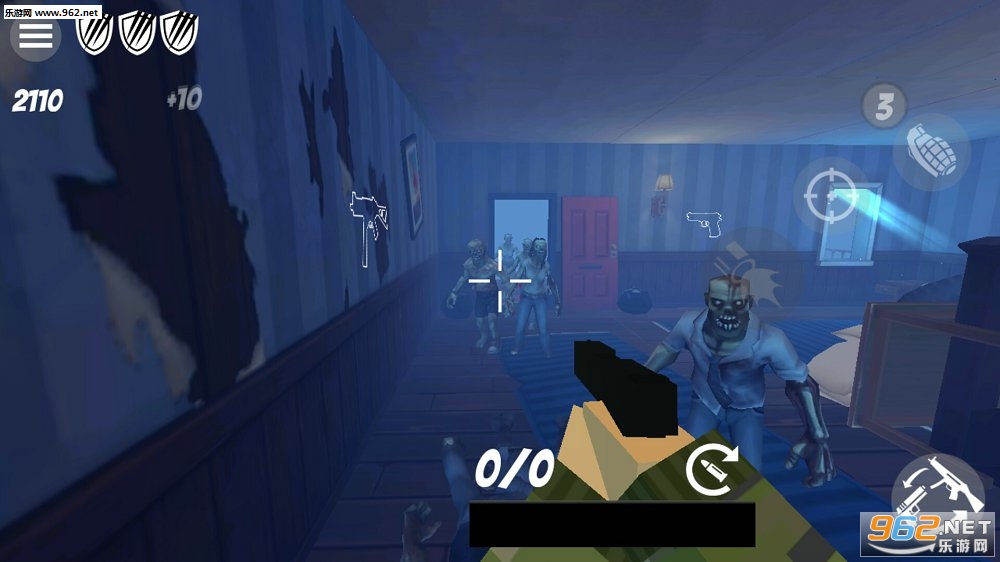 2、简单的操作,射击过程中能随时解锁各种武器,每一间房间都会迎接多重挑战,不要让僵尸靠近你,僵尸比较多的时候可以使用手榴弹;