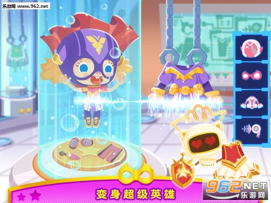 糖糖的换衣间里惊喜无处不在,充满能量的超能套装早已准备好为主人服务,换上套装的糖糖瞬间从小可爱化身女超人。