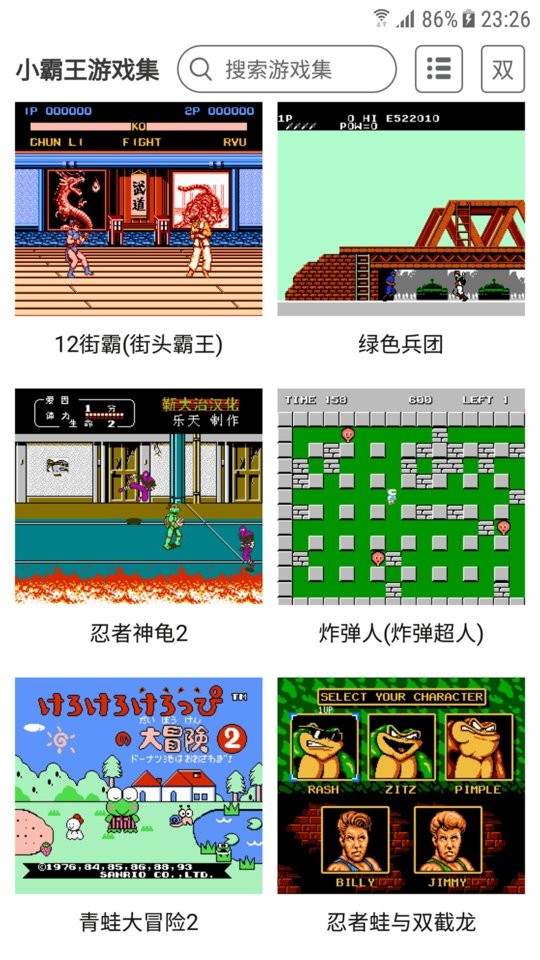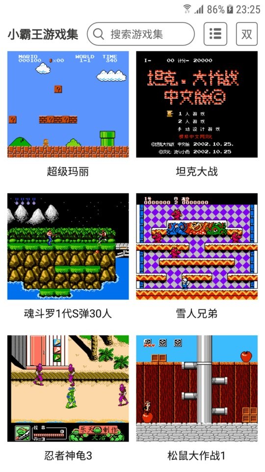 小霸王app是能够让玩家们在手机上体验到各种经典的小霸王游戏的软件,平台上用户们能够使用自己的手机模拟小霸王的运行环境,让自己能够在手机上玩上经典的小霸王游戏,雪人兄弟、魂斗罗、忍者神龟、冒险岛、超级玛丽等等等等在这里全都能够找到,自由的进行玩耍。
