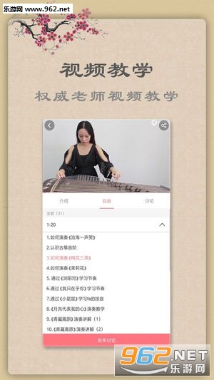 筝乐器的琴弦,以不同的手法让古筝呈现不同的声音,跟随着系统教程的指引完成新手教程,从一个萌新开始入门。