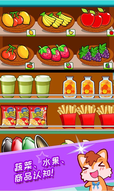宝宝开心超市游戏是一款宝宝们进行益智能力的学习游戏,能更好的去锻炼孩子们的记忆力,很多的零食需要宝宝们来记录,也能让孩子们更好的认识到相关的食物品种,进行一些需要购买的方式,起到一种育儿的效果,一起来看看吧!