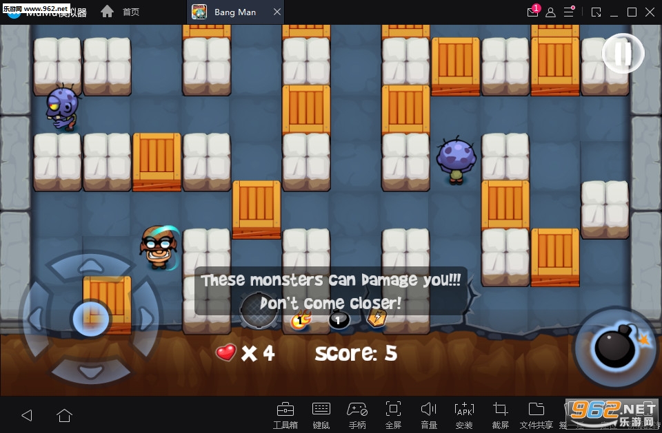 如果你玩过泡泡堂QQ堂,那么你对这款游戏的玩法一定不会陌生。Bang Man是一款画面不错僵尸题材的经典玩法手机游戏,如果你有闲暇的时光无处打发,那么这款游戏还是比较不错的选择,快来下载吧!