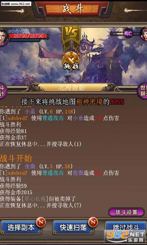 【快速战斗】通过快速战斗功能,角色每次都可以瞬间获得额外2小时的副本收获,使玩家在手机装备和积攒银两经验的路上快人一步。