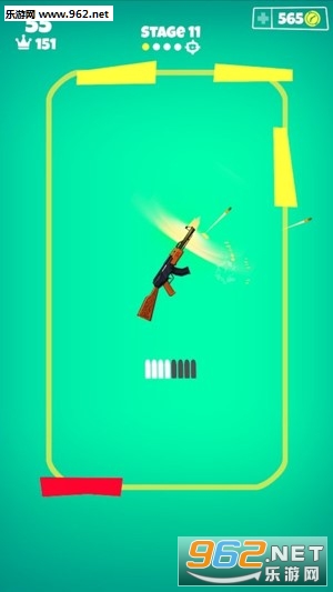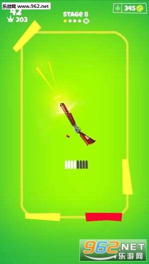 你要控制的是一把快速自转的枪,而目标则在四周快速旋转,只有用有限的子弹击中所有的目标才能过关!