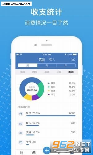 统计图表 - 年、月、周多维度图表分析,收支状况、消费趋势一手掌握。