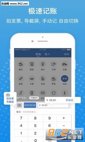 手动记 - 没有票据或账单截图,也可以用传统的手动记账模式。