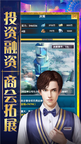 一款商战题材的经营养成类手游,玩家将作为一名青年开始你的全新生活,别墅超跑等你来收集,更有美女相伴,体验与众不同的人生乐趣,投资融资,感兴趣的玩家不要错过哦!