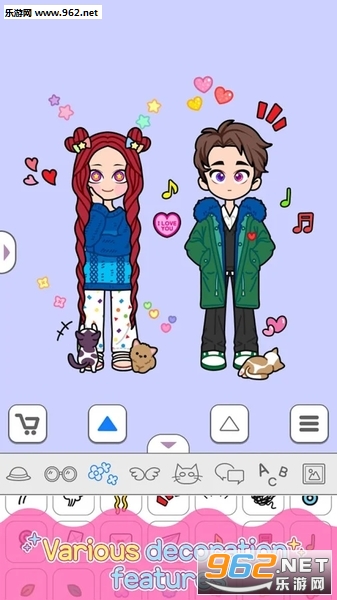 在这里你可以自定义眼睛,皮肤,鼻子,嘴巴,发型,服装,动作等总会有一款适合你的,在这里还可以自定义背景,在背景墙上放上糖果,花,表情等各种装饰,根据自己喜欢的来定义,还可以定义你心目中最喜欢男孩子的类型,各种等。在这里都可以实现,一起来试试吧。