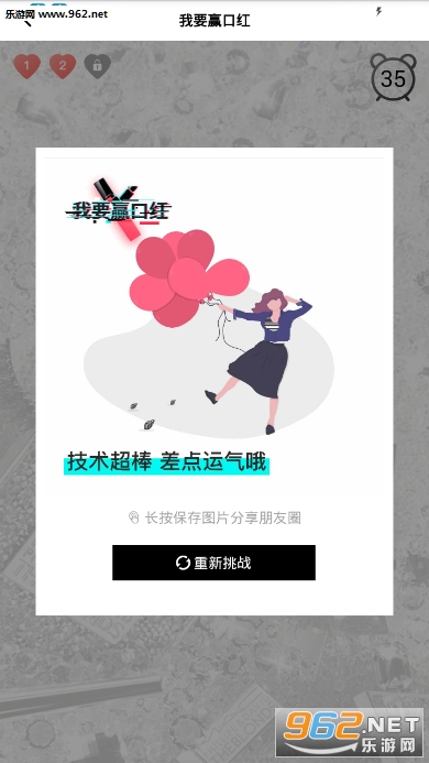 闯关失败可邀请好友获得一张复活卡,还可继续来挑战,互动感十足,满足年轻时尚用户的喜好,通过极小付出就有机会赢口红啦!