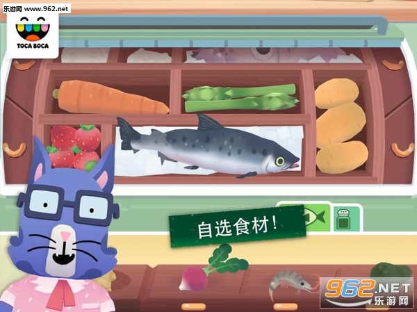 问候顾客,然后前往冰箱看看你所有新鲜食材。选择大米、金枪鱼、鳄梨、芦笋、鱿鱼、鲑鱼、辣椒、意大利腊肠、小萝卜、甘蔗(不开玩笑!)、姜、土豆、豆腐、虾等等材料。如果你更愿意选择蔬菜,可以切换成素食设置!