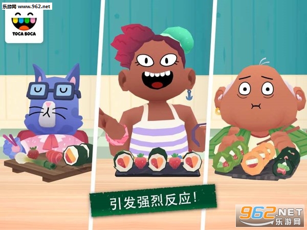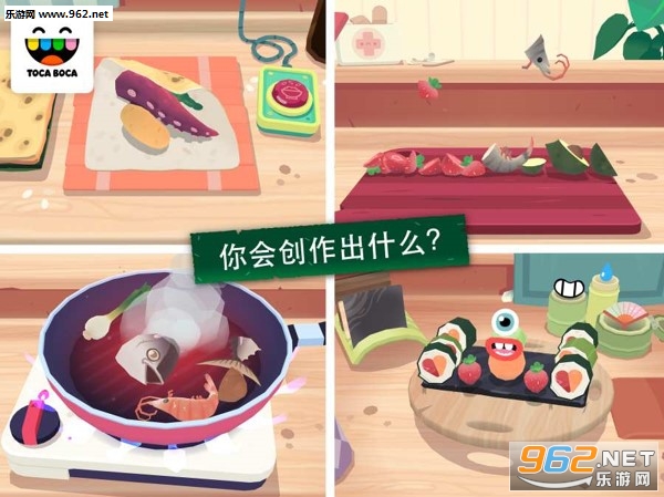在《托卡小厨房寿司》中,你是一家忙碌海滨餐厅的主厨。顾客们上门来,由你决定给他们上什么菜。比如说将鱿鱼、芦笋和甘蔗切片,然后全部包到海藻手卷中?放手干吧。想用西瓜做出星形和心形,然后跟鱼和红辣椒混在一起?或者制作圆溜溜的米饭团?手指就是你最好的工具喔。利用奇妙的原料、调味料、工具、菜碟和一些隐藏惊喜,你必定能把生意做得有声有色。