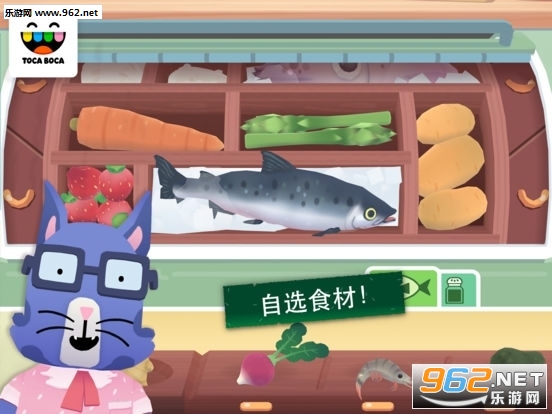 1、问候顾客,然后前往冰箱看看你所有新鲜食材。选择大米、金枪鱼、鳄梨、芦笋、鱿鱼、鲑鱼、辣椒、意大利腊肠、小萝卜、甘蔗(不开玩笑)、姜、土豆、豆腐、虾等等材料。如果你更愿意选择蔬菜,可以切换成素食设置;