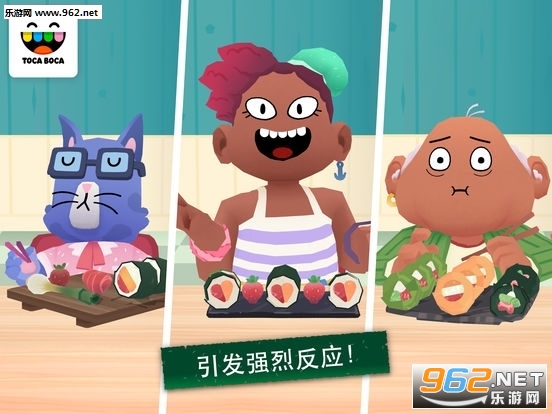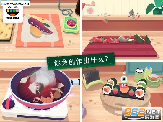 在《托卡小厨房寿司》中,你是一家忙碌海滨餐厅的主厨。顾客们上门来,由你决定给他们上什么菜。比如说将鱿鱼、芦笋和甘蔗切片,然后全部包到海藻手卷中?放手干吧。想用西瓜做出星形和心形,然后跟鱼和红辣椒混在一起?或者制作圆溜溜的米饭团?手指就是你最好的工具喔。利用奇妙的原料、调味料、工具、菜碟和一些隐藏惊喜,你必定能把生意做得有声有色。