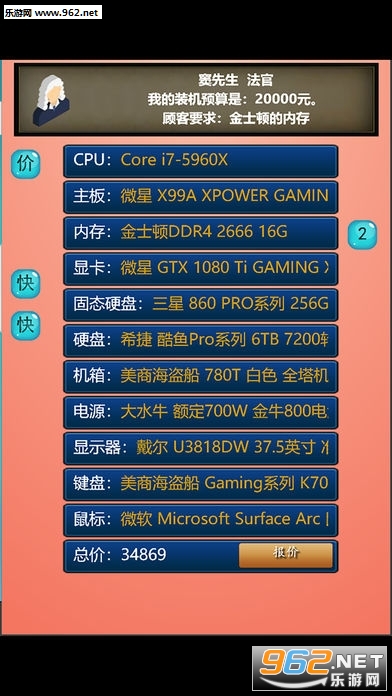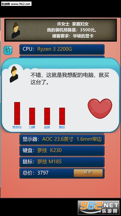 现在你拥有一个装机公司,你要根据顾客的需求制定好装机清单,一定要让他们满意,这样才能完成一单!注意电脑的兼容问题,千万不能出错,不然会影响用户体验!