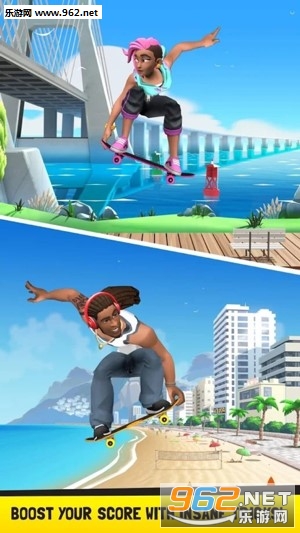 一款非常不错的滑板手游,精美的卡通画面,华丽的姿势动作,炫酷的技巧组合,体验无限激情!喜欢的小伙伴们赶紧来下载吧!