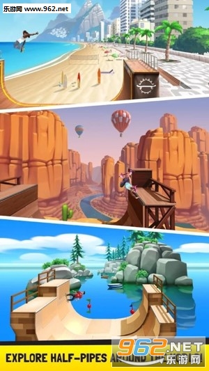 环游世界,选择您最喜欢的地点去滑板!从迈阿密海滩到贝加尔湖,您可以享受各种各样的坡道!