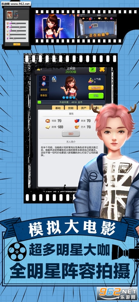 1、根据剧本要求去选择演员,同时还得在游戏中来选择更多不同的剧本拍摄;
