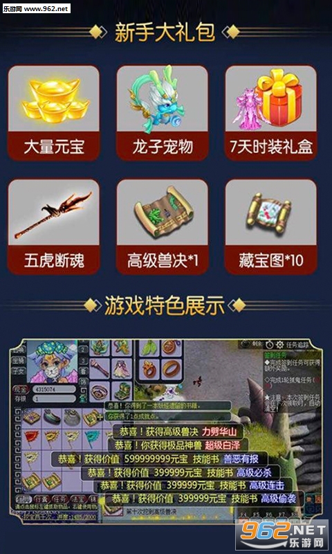 1.上线即送VIP12,元宝48888,铜币288万!!让你成神快人一步!