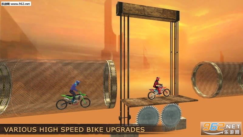 游戏的赛道设计得非常刺激,摩托车的种类也很多,摩托车不小心掉下赛道的时候镜头也会随着往下掉,特别真实!