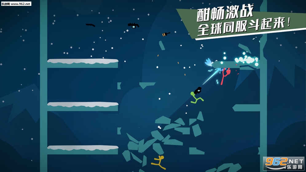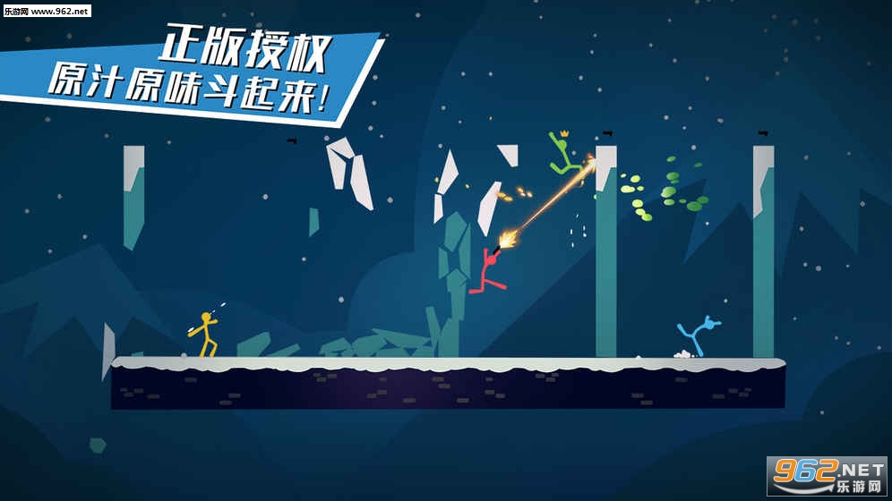 最重要的是,《逗斗火柴人》中的地图是可以被破坏的。不要觉得自己拿到武器就胜券在握了,因为你很有可能会打碎自己的落脚点坠入深渊,却只能看着“手无寸铁”的对手紧紧抓着墙壁。