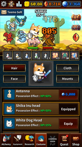 一款像素地牢题材的放置rpg类手游,游戏中玩家可以打造自己的形象,选择不同的动物和头发脸型,进入地牢中挑战怪物并收集不同的动物魔物角色,不断击败敌人来强化自己的能力,挑战更加强大的敌人。