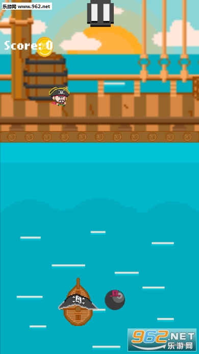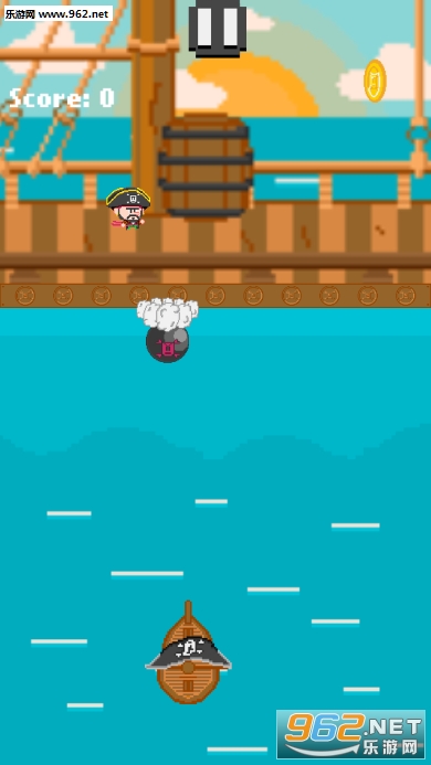 你必须和海盗一起跳,才能得到硬币(通过触摸任何地方),才能用你的船躲过子弹(通过倾斜设备)。如果海盗丢了一枚硬币,冒险就会继续,但如果一颗子弹击中了你的船,游戏就结束了,所以永远不要忘记躲避。