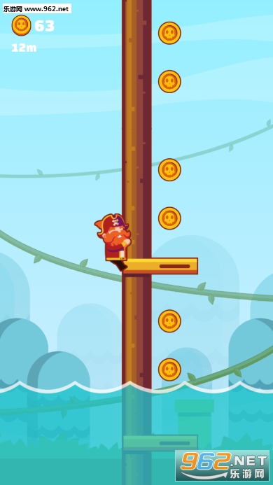 《海盗攀登游戏》是一款非常有趣的躲避类休闲手游,采用小清新式的画风,操作非常简单,点击屏幕控制海盗的方向就可以了。玩家在游戏中需要足够敏捷的躲过树干上的各种小木棍,不要被打下来,尽量的爬升的更高就可以了哦!