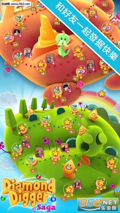可爱的矿工Diggy发现一张埋藏着无数钻石的藏宝图,并开始他的挖宝大行动。