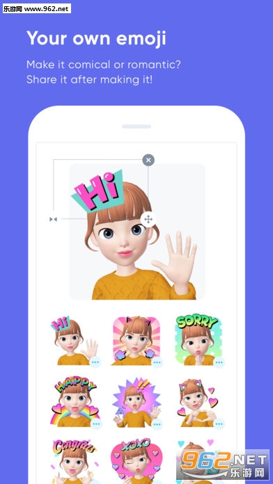 创造你的角色,摆出可爱pose——放入背景中拍照吧。制作角色的表情可以在聊天中随意使用哦!